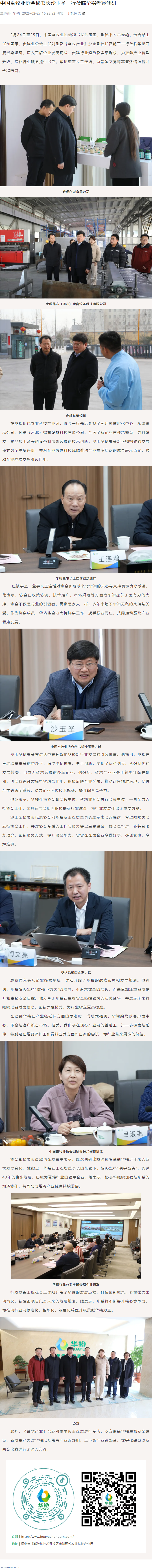 中國畜牧業協會秘書長沙玉圣一行蒞臨華裕考察調研