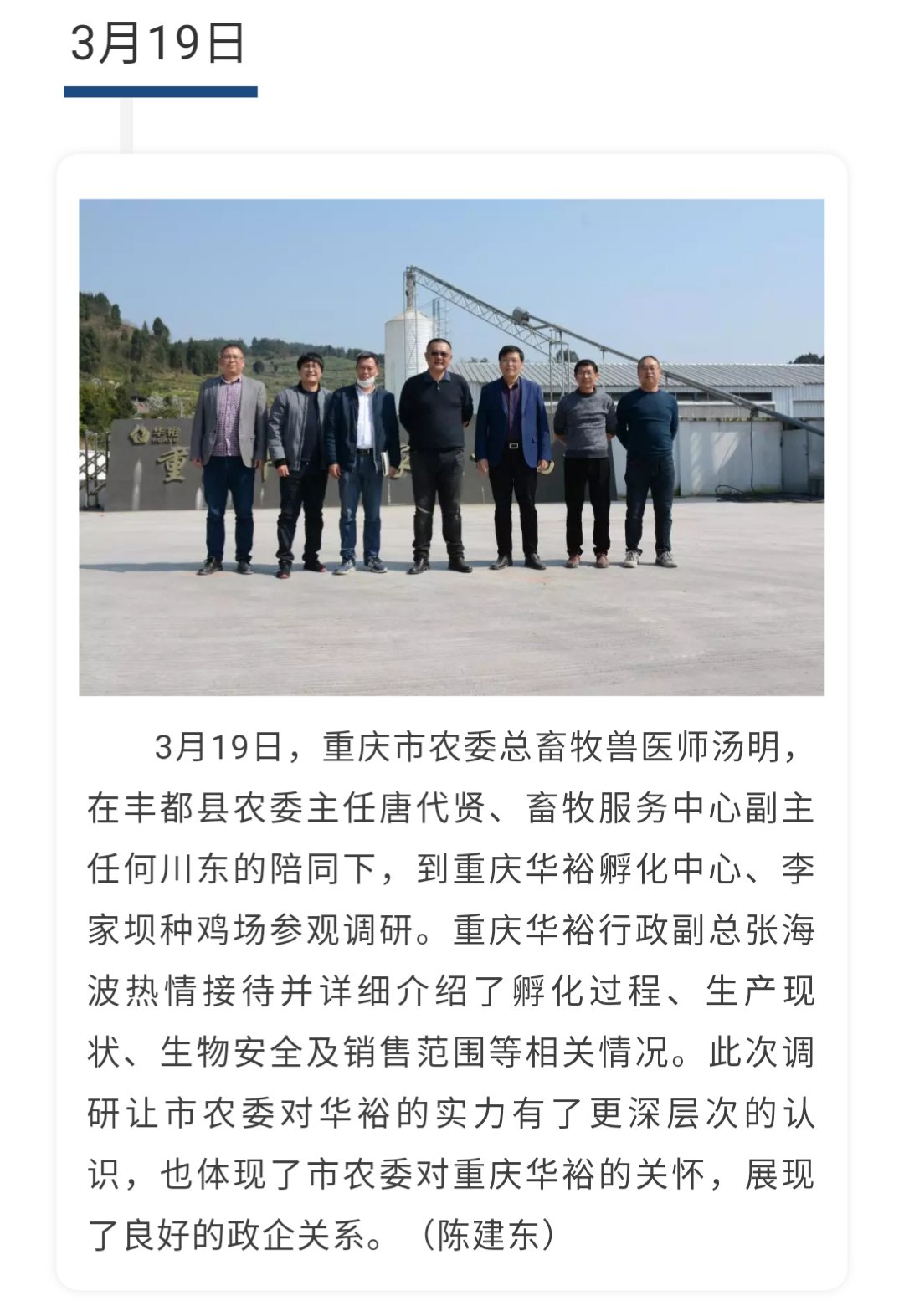 重慶市農(nóng)委總畜牧獸醫(yī)師湯明一行蒞臨重慶華裕